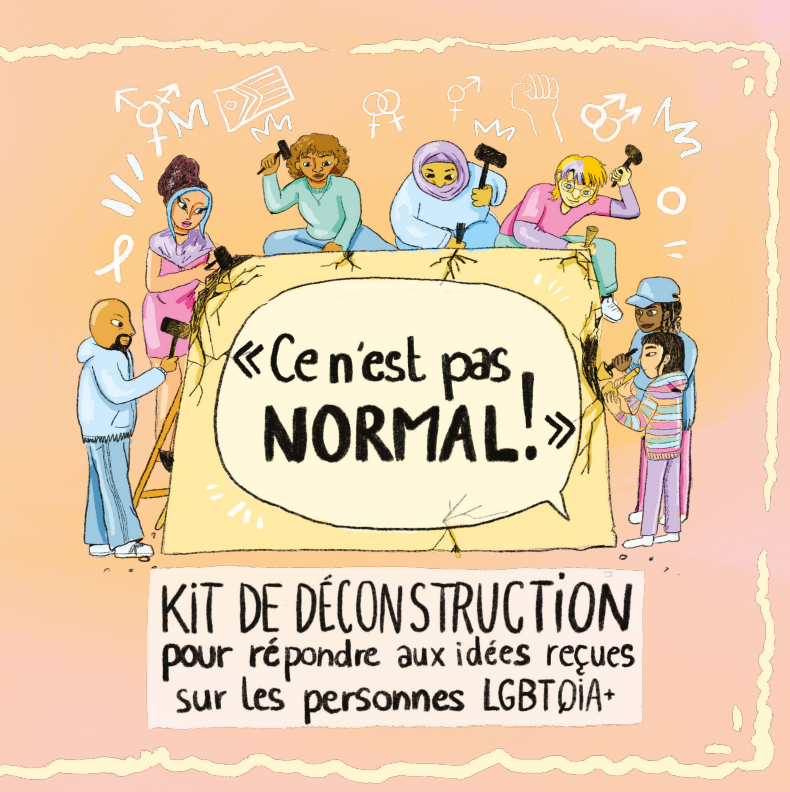 | Ce kit de déconstruction a été créé pour aider à répondre aux idées reçues et stéréotypes LGBTQIA+phobes que l’on rencontre souvent en animation ou dans la vie quotidienne. Il rassemble les mythes les plus courants, les analyse et les déconstruit. L’objectif est d’offrir des outils simples pour déconstruire ces préjugés et rendre visibles les normes implicites qui alimentent les discriminations. Ce kit s’adresse à toute personne souhaitant mieux comprendre et combattre les stéréotypes LGBTQIA+, en particulier les animateur·ices jeunesse et les jeunes adultes engagés contre ces discriminations. À consulter / emprunter dans notre outilthèque ou à télécharger gratuitement ci-dessous. |