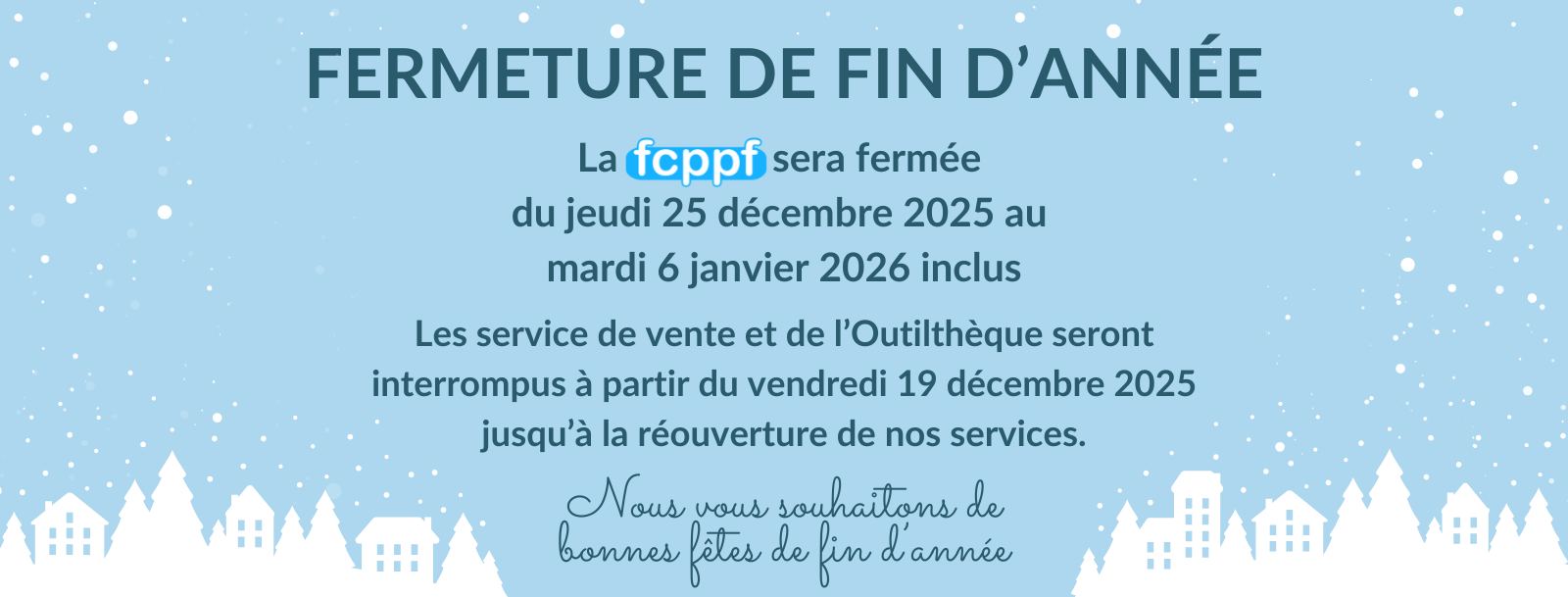 La Fcppf sera fermée du jeudi 25 décembre 2025 au mardi 6 janvier 2026 inclus.