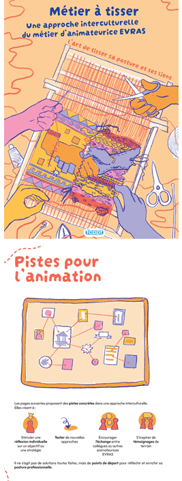 Ce livret de 90 pages est divisé en deux sections : une partie réflexive et une partie de pistes concrètes pour l’animation. Il a été élaboré notamment à partir d’entretiens réalisés avec 8 animateurices de terrain, dont vous retrouverez des extraits tout du long !