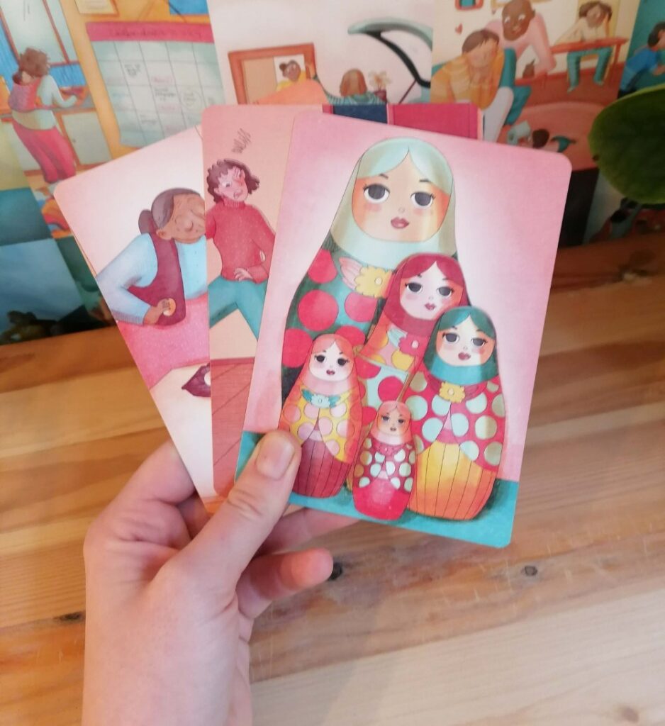 Comment les situations reprĂ©sentĂ©es sur les cartes ont Ă©tĂ© choisies ? Quel angle a Ă©tĂ© choisi ? Le maĂźtre mot, c’est la pluralitĂ© : des situations, des amours, des conceptions de l’amour, mais aussi des personnages, dans leur Ăąge et leur corporalitĂ©. Il n’y a pas une forme d’amour, il y en a plein, et l’outil laisse place Ă  de multiples interprĂ©tations.