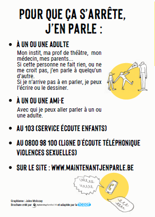 - À qui parler en cas de violences (proches et services d’écoutes en Belgique).